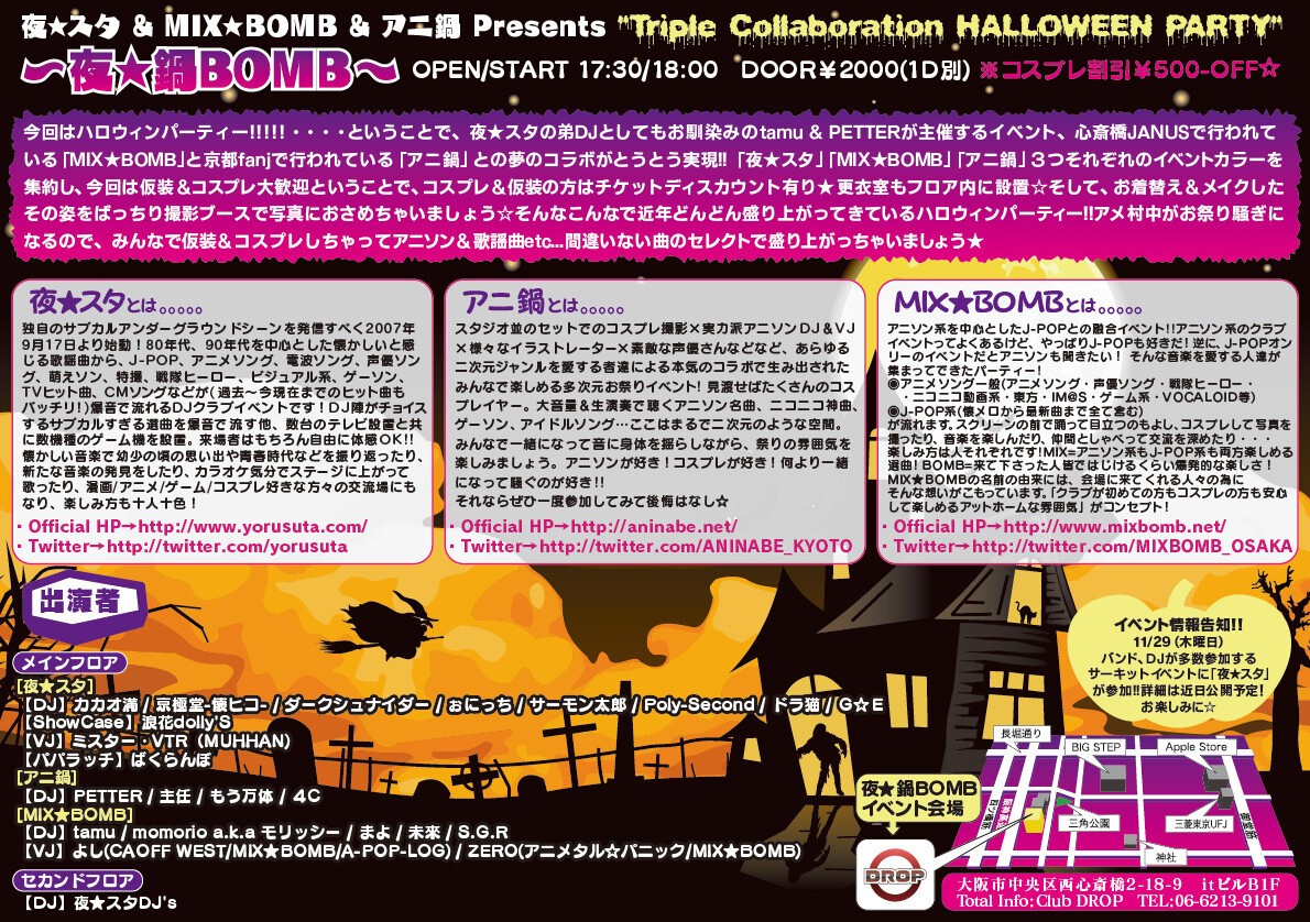 心斎橋JANUSで行われている「MIX★BOMB」と京都fanjで行われている「アニ鍋」との夢のコラボがとうとう実現!!