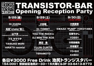 9/28、29、30の池尻トランジスタバー レセプションパーティーの各曜日のDJが決定いたしました〜!!