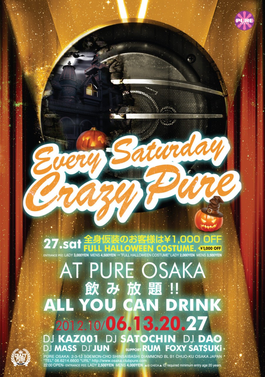 毎週600人オーバーで満員御礼のPUREの土曜日『 CRAZY PURE 』!!