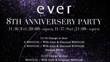 いよいよ今週末!フリーフードもご用意。 ever 8TH ANNIVERSARY PARTY BY Me And My Friends