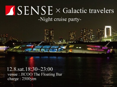 宇宙戦艦ヤマトでも有名な漫画家、松本零士デザインシップ”JICOO The Floating Bar”7色に光る宇宙船が 日の出桟橋?お台場海浜公園を30分毎に行き来しており、船内では、海抜0メートルの動く東京湾の夜景と、 渚チャンネルのチャンピオンであり代官山AIR等で活躍中のDJ yucci、人気アフタヌーンParty「Sweetest」オーガナイザーSeigoを中心に オシャレで心地よいダンスミュージックがお楽しみいただけます。