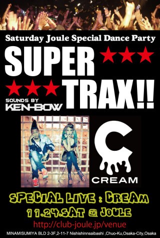 アメリカ村クラブジュールで土曜日に開催されていたオールジャンルイベントSUPER★TRAXの進化イベント♪jouleとSUPER★TRAXのコラボレーションでこのイベントでしか楽しめない独特の雰囲気で皆さんをお迎えします(^^)v4Beatの盛りあがる洋楽ヒットはもちろん、話題のEDMをどこよりもわかりやすくアッパーにプレイしていきます♪