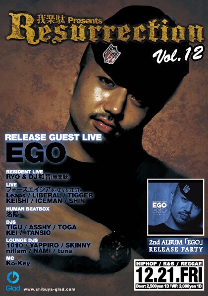 毎回豪華なGUESTのSHOW CASEに加え、東京渋谷を軸に活動する若手MC.DJが脇を固めます!!今回のGUESTには先日2nd ALBUM「EGO」を発表!!新世代を背負う1人!!EGOの登場!!この勢いはもはや誰にも止める事はできず1度その輪に入ってしまうと抜け出せない…抜け出す気すらしなくなるクオリティは1度足を運んでもらえればすぐに理解して頂けるでしょう!!もちろん聞くまでもなく大量の振る舞い酒あり!!素晴らしい空間、音楽、お酒を用意し、それぞれが自由に遊べる場所を提供します!!