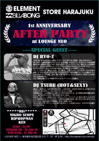 1周年を記念し、ご愛用頂いている皆様に感謝の意味を込め18時からELEMENT STOREにて1st ANNIVERSARY Partyを開催、Party後は場所を[LOUNGE NEO]に移しAfter Partyを開催致します。