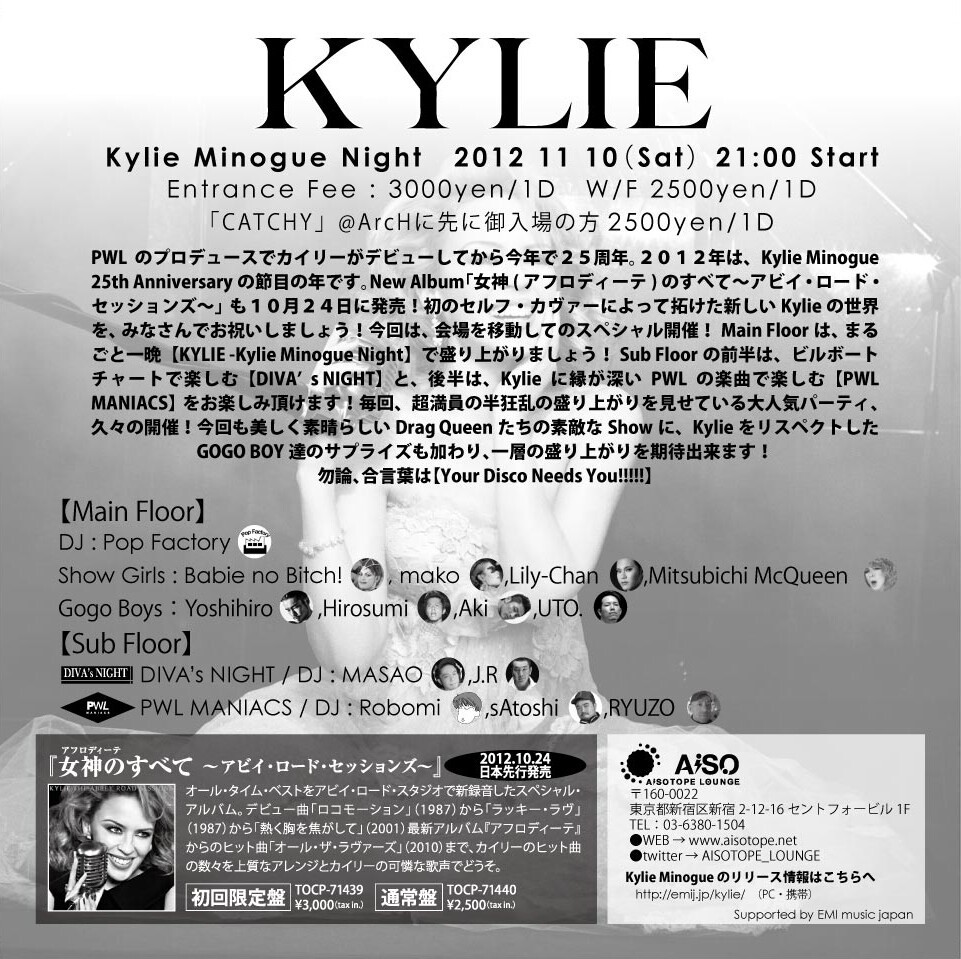 Sub Floorの前半は、ビルボードで楽しむ【DIVA's NIGHT】と、後半は、Kylieに縁が深いPWLの楽曲で楽しむ【PWL MANIACS】をお楽しみ頂けます!