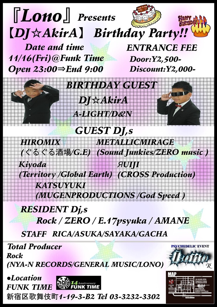☆☆☆『Lono』 Presents 【DJ☆AkirA】 Birthday Party!!☆☆☆