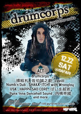 Aaron Spectreの音楽はマサチューセッツ郊外ウェイストランドのオールエイジ向けショーでドラムを叩くことから始まった。彼の音楽性形成期にはConverge、Bane、Caveなどのバンドから多大な影響を受けた。エレクトロニックミュージックに興味を持った事からNYに移住してターンテーブルを手に入れ、アンビエントやジャングル、ドラムンベースの楽曲製作に着手していく。2003年にはベルリンへと移りアーティストとしてのキャリアをスタートさせる。幾つかの12インチバイナルをリリースし、間もなくヨーロッパ中のスクアットやレイブでそれらをプレイする信奉者に恵まれる。スペクターはありそうもない構成のエレクトロニックサウンドとアメリカンハードコアの荒々しさを合成させる為にDrumcorpsを始める。その結果は皆のためではなく一部のコアな信奉者のためにあり、「Drumcorpsのライブは壮絶なエネルギーに満ちたカタルシスの事件だ」といった評判を呈するものだ。Drumcorps初のフルアルバム「Grist」は、過去にAphex Twin、Chris Cunningham、Peter Gabrielなどが受賞してきた名誉ある芸術祭「アルス・エレクトロニカ」で優秀賞を獲得。2008-2009年は二度の日本、ロシアツアーを含むメキシコ、台湾、オーストラリア、ニュージーランドと、四大陸に渡ってのギグで158,000マイル以上の移動を記録する期間となった。その後2010年以降はアメリカに再度定住するとともに、待望の「Grist」に引き続く展開の最後の仕上げに着手している。