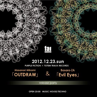 新木場ageHaを拠点にALPH ZENが主催するパーティー「PURPLE FICTION」と、国内発ハウスレーベル「TOTEM TRAXX」がショーケースとしてfai aoyamaで初の共同開催が決定。ゲストには京都の気鋭、Masanori Mikamiを招聘。彼の待望のアルバム「OUTDRAW」、更にALPH ZENとYAMATOによるユニット、Basara-ZAがTOTEM TRAXXから発表するEP「Evil Eyes」のリリースを記念しクリスマス前の夜を盛大に彩る。