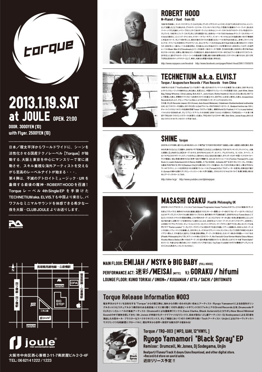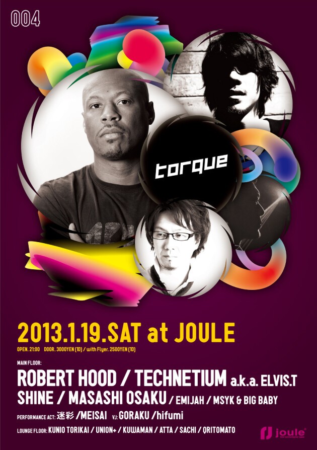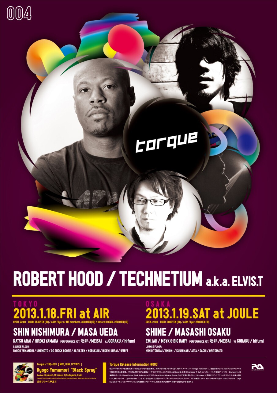 日本/環太平洋からワールドワイドに、シーンを活性化させる国産テクノレーベル【Torque】が始動する。大阪と東京を中心にマンスリーで常に連動させ、スキル重視な海外アーティストを交えながら至高のレーベルナイトが始まる・・・。