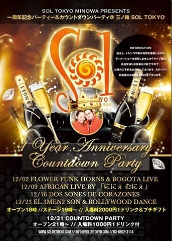MINOWA SOL TOKYO 1ST YEAR ANNIVERSARY PARTY & COUNTDOWN PARTY(一周年記念パーティー&カウントダウンパーティ)@ 三ノ輪 SOL TOKYO