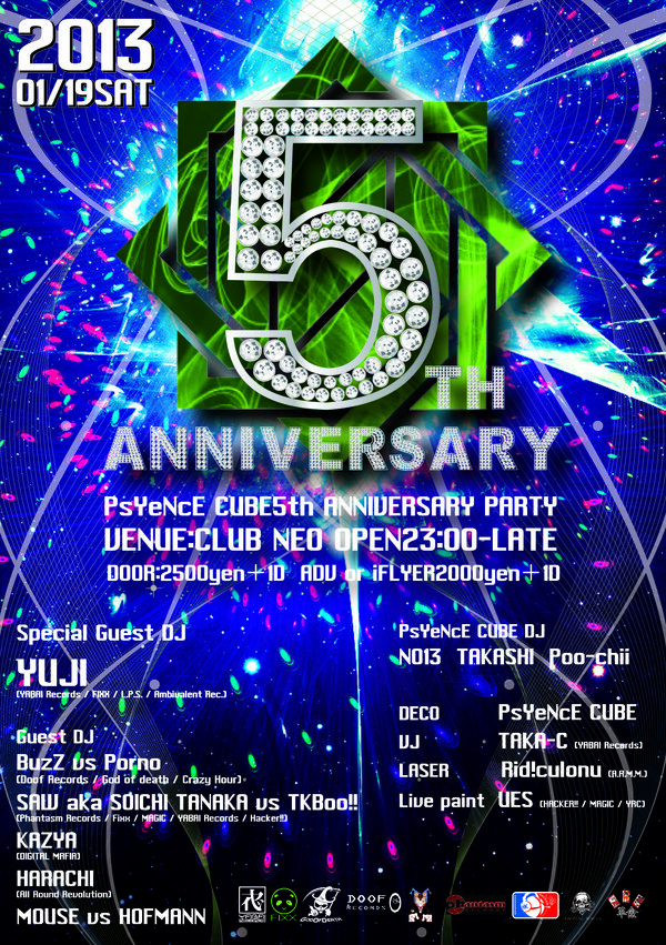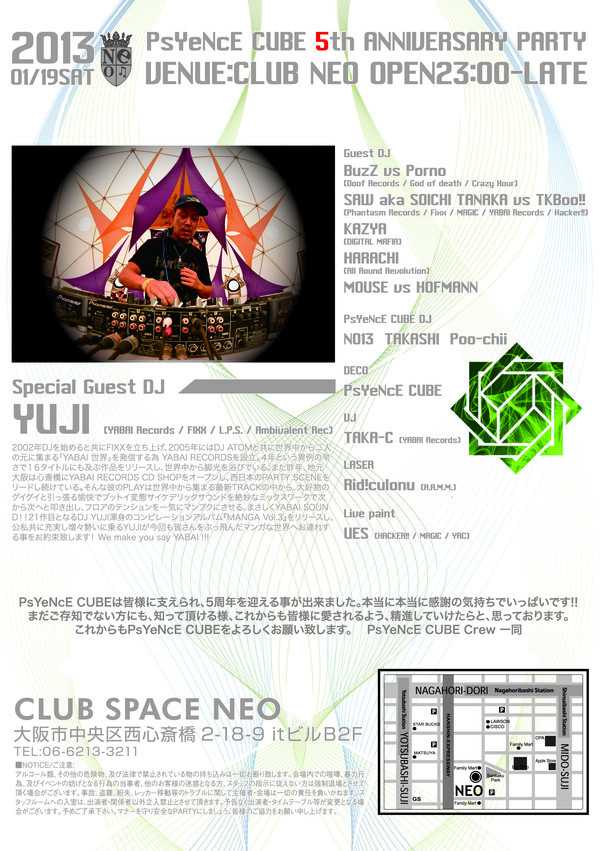 去年6月に開催した大阪第一弾PARTY、そして和歌山片男波海水浴場での3年目のBEACH FESTIVALを大盛況に遂げたあの、PsYeNcE CUBEが5周年を迎え、大阪に帰って来ます!!!!