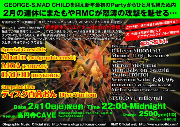 GEORGE-S,MAD CHILDを迎え新年最初のPartyからひと月も経たぬ内、2月の連休中にまたもやRMCが怒涛の攻撃を魅せる…