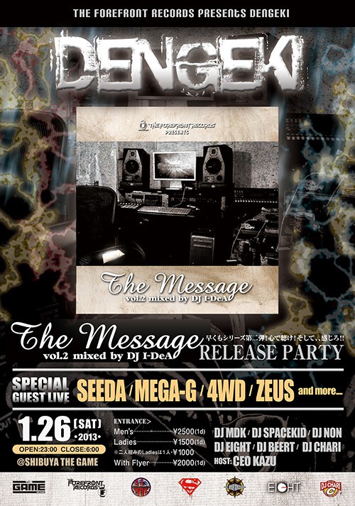 2013年一発目となる今回はTHE FOREFRONT RECORDSがお届けするMIX CD『THE MESSAGE Vol.2 mixed by DJ I-DeA』のリリースパーティー!!!