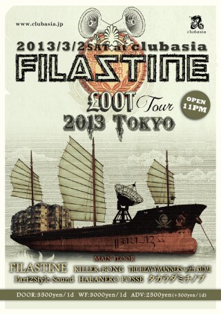 ダンスホール、ダ ブステップ、クンビア、サンバ、ガムラン、etc…と、様々な音楽的要素に加え、超絶的なパーカッショニストでもあるFILASTINEは、モロッコの伝 統トランス音楽、グナワで使われる金属製カスタネットのカルカベ、サンバには欠かせないブラジルの国民的楽器、パンデイロ、アラブ音楽やトルコ音楽で使用 されるダラブッカやはたまたショッピング・カートなどを叩く圧巻のライヴ・パフォーマンスを見せてくれる事間違い無し!