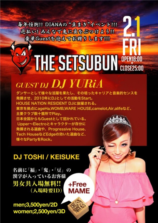 ※名前に「福」・「鬼」・「豆」の入っているお客様「男女共入場無料!!」(入場時要ID)