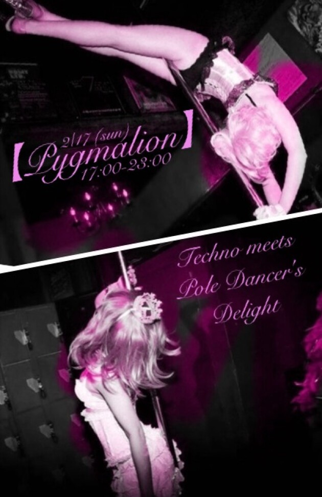 ギリシア神話に登場するピュグマリオーンと題された日曜午後を彩るポールダンスとテクノの融合アフタヌーンパーティー。DJ YAMA (Sublime Records)を基軸としDJ SAIMURA,HARRY,YU MAYUYAMA,Reach,Tamitsu等の若手実力派テクノDJが集結。都内有名クラブ/ラウンジ等で活躍するポールダンサー達はピュグマリオーンが作り上げたガラテアの如く女神に微笑まれた後、流麗なダンスを披露してくれるであろう。