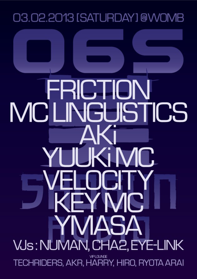 LINE UP: FRICTION, MC LINGUISTICS, AKi, YUUKi MC, VELOCITY, KEY MC, YMASA