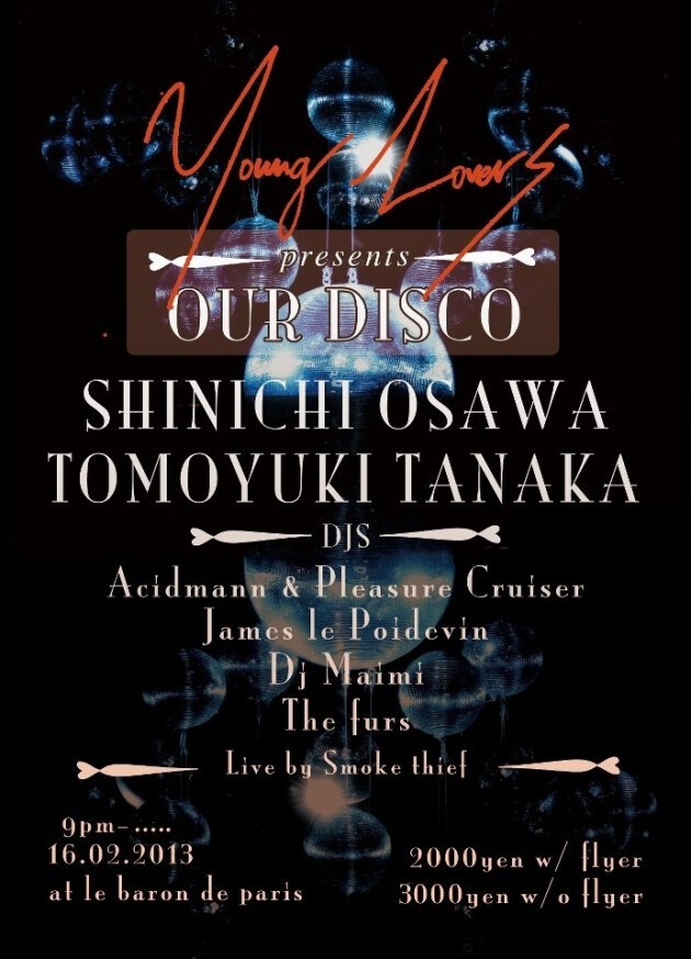 This night is about listening to good music. Enjoy yourself and dance, forget about making pose and give yourself a good night of dancing! Let’s make your night special!! We will have OURDISCO (Shinichi Osawa & Tomoyuki Tanaka) Japan’s best DJs, they will be playing back to back specially for this night. Young Lovers has being around for 5 years and this is the first time they will play for us so don’t miss it! We will also have a special live and others amazing DJ’s during the all night! LET’S BOUNCE!