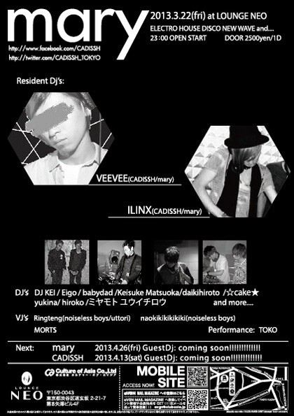 DJにはCADISSHよりRESIDENT DJでもある、VEEVEE !!! ILINX !!!