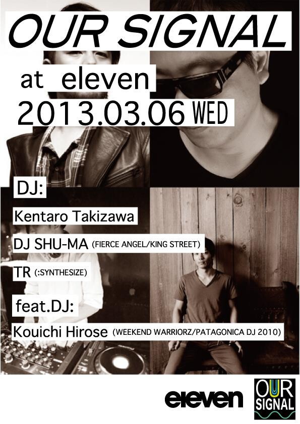 昨年、世界各国を歴訪し新たな感性を獲得したKentaro Takizawa。そのTakizawaが仕掛けるニューセッション"OUR SIGNAL"。DJ陣にはDJ SHU-MA, TR。そして、フィーチャリングDJにKouichi Hiroseを迎え、日本のみならず世界規模でも活躍中のDJが集結。WORLD STANDARDな振り切った感性のセッションが今始まる!