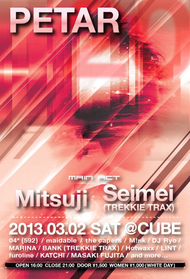 04 (592) / maidable / the capers / M!nk / BANK (TREKKIE TRAX) / DJ Ryo / MARINA / Hotwaxx / LINT / furoline / KATCHI / MASAKI FUJITA / and more....