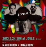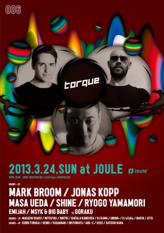 より一層の進化を続ける大阪のTorqueレーベルナイト第6弾に、イビザからベルリンまで世界中のフロアを熱狂の渦に巻き込んでいる「Mark Broom」がロンドンより満を時してTorqueに登場する。またニュースクールミニマル界において新進気鋭のトレンドメイカーとして評価が高いアルゼンチンの鬼才「Jonas Kopp」も初来日、更なる高みを目指す 新世代テクノサウンドを体感できる希少な一夜を大阪・CLUB JOULEよりお送りします。
