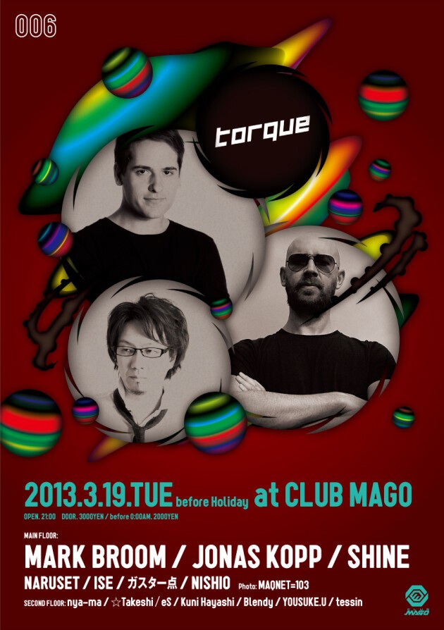 より一層の進化を続ける大阪のTorqueレーベルナイト第6弾に、イビザからベルリンまで世界中のフロアを熱狂の渦に巻き込んでいる「Mark Broom」がロンドンより満を時してTorqueに登場する。またニュースクールミニマル界において新進気鋭のトレンドメイカーとして評価が高いアルゼンチンの鬼才「Jonas Kopp」も初来日、加えてTorqueを牽引するジャパニーズ・ミニマルアーティスト「Shine」も大阪から参戦する。更なる高みを目指す 新世代のテクノサウンドを体感できる希少な一夜を名古屋・CLUB MAGOよりお送りします。