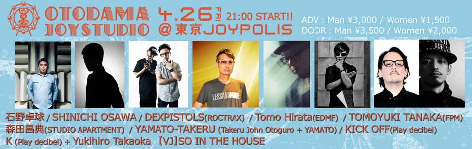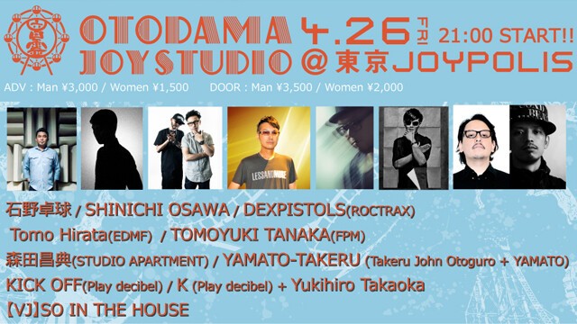DAISHI DANCEらが出演し大好評で終了した「音霊 OTODAMA SEA STUDIO」と「東京JOYPOLIS」のコラボレーションイベント、OTODAMA JOY STUDIOが4月26日(金)に早くも2回目のイベントを開催する!