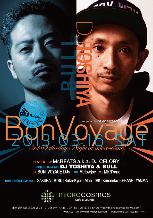 ・BON-VOYAGE DJs are SAKURAI,ATSU,Suke-Kyon,Mah,TAK