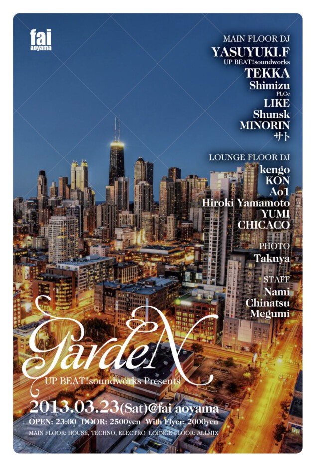 UP BEAT!soundworks Presents GARDEN@fai aoyama