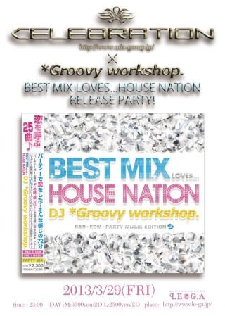 3月のCELEBRATIONは、4月17日にavextraxから全国発売するNo1オールジャンルDJ「グルービーワークショップ」によるavex BEST MIXシリーズの7作目『BEST MIX LOVES...HOUSE NATION』の RELEASE PARTY!!