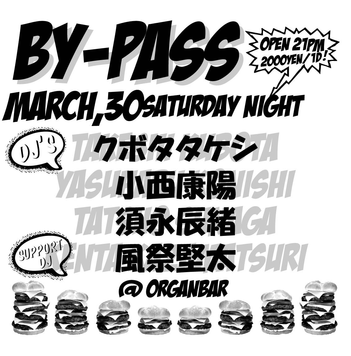 Organbarの第五土曜日はまさに看板イベント【BY-PASS】です! 間違いなく楽しい一夜をお届けいたします。 クボタタケシ氏、小西康陽氏、須永辰緒氏の夢の共演をお楽しみください。