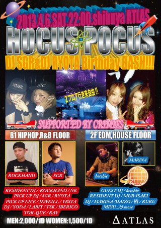 2012年11月よりスタートし、4月に6回目、半年を迎えるHOCUS POCUS!!@渋谷ATLAS