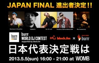 来る5月5日(日)、「burn WORLD DJ CONTEST 2013 JAPAN FINAL」東京・渋谷WOMBにてついに開催される!