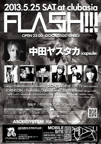 CLUBシーンからJ-POPシーンを超え世代を超える、シーン最先端のサウンドを提供し続ける中田ヤスタカ(capsule)が贈る週末唯一のRESIDENT PARTY "FLASH!!!"