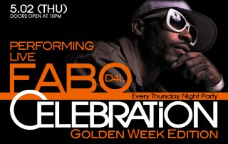 毎週木曜パーティー“CELEBRATION”のGW祝前日スペシャル版として、アトランタからFABOが登場!!