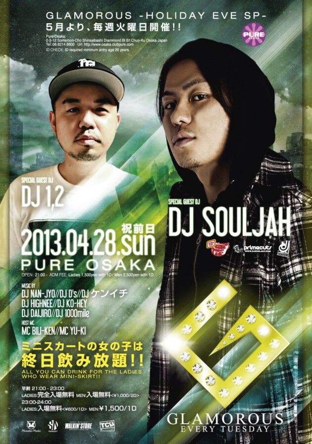 5月より毎週火曜日、PURE OSAKAで開催されるNEW PARTY GLAMOROUS!!