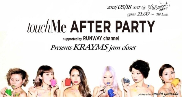 マークスタイラー社が年に2回開催するファッションショー「touch Me」。そのアフターパーティーが都内の有名クラブにて、サーキット形式で開催されます。今回、Le Baron de Parisで行われるアフターパーティーをチームファッションブロガーKRAYMS JAM CLOSETがプレゼンツで行うこととなりました。当日は、ゲストDJ , ゲストLIVEの他、ボディーアート、ヘアメイクブース、楽しいコンテンツが盛りだくさん!更に、『SHUTTER magazine』主催、フォトグラファー山田敦士によるファッションスナップ撮影もあります!また、先着でご来場されたお客様にはプレゼントもありますので、皆様お誘いの上、是非お越し下さい。