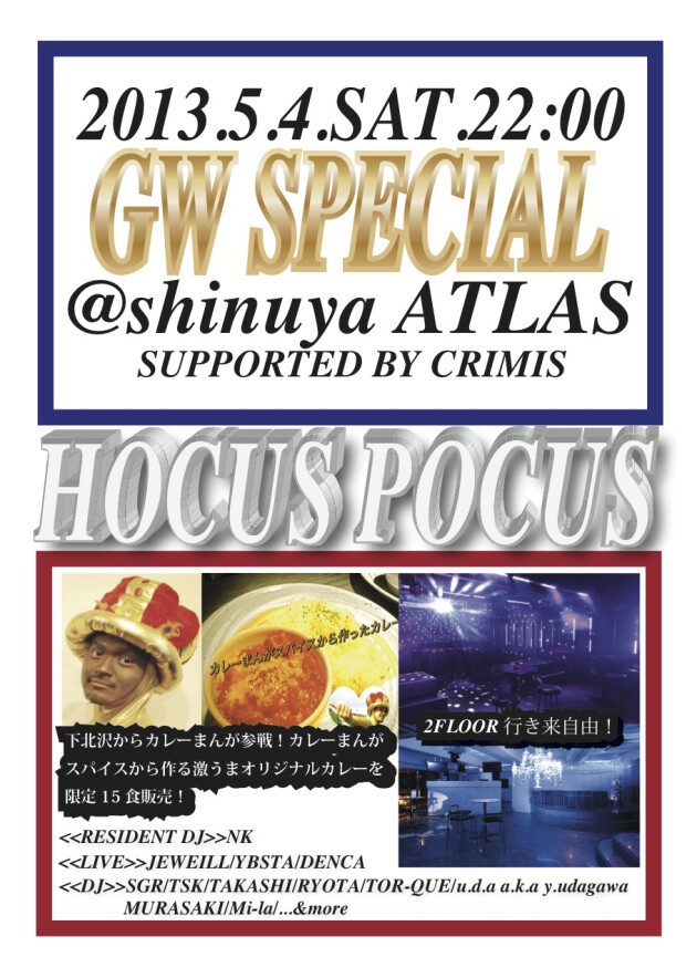 2012年11月よりスタートし、5月に7回目迎えるHOCUS POCUS!!@渋谷ATLAS
