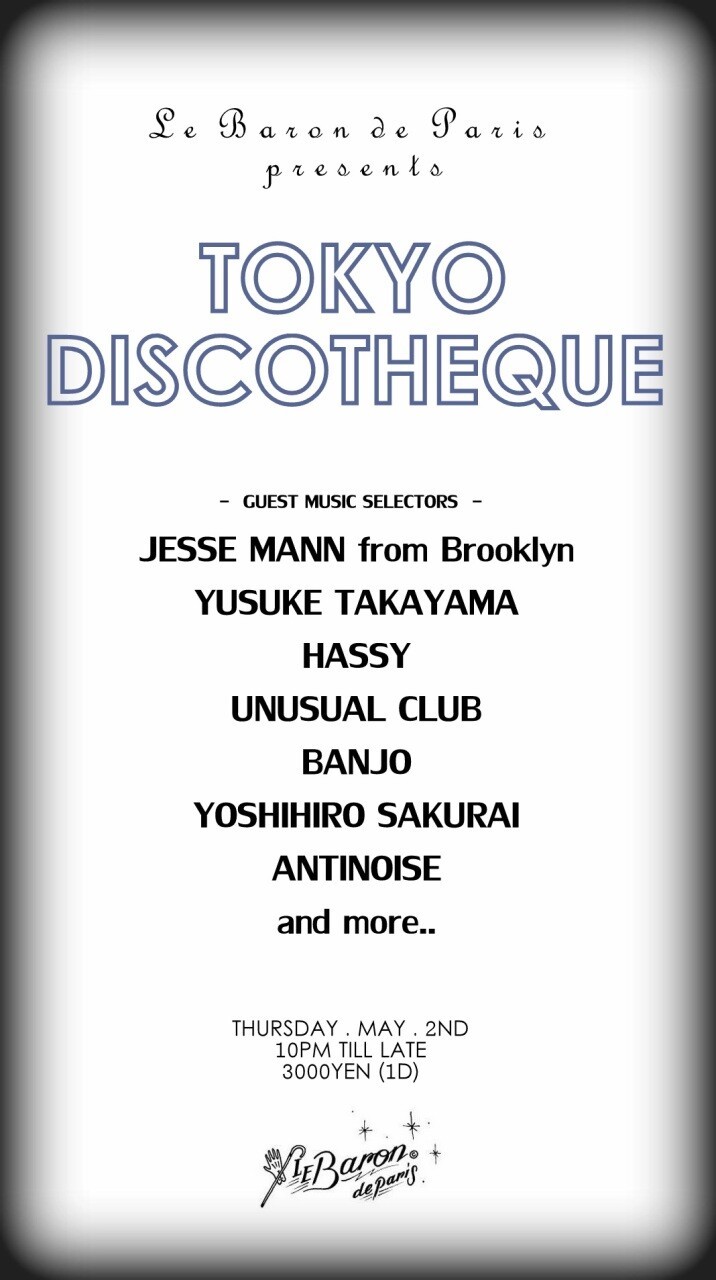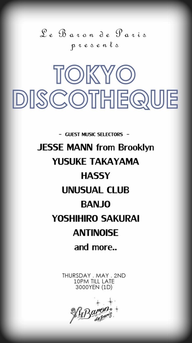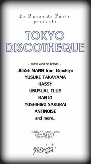 ブルックリンを拠点にニューヨークのダンスフロアを盛り上げるJesse Mannをスペシャルゲストに招き、インターナショナルなDJ人が勢ぞろいするミュージックコア必見のパーティー、TOKYO DISCOTHEQUE今夜開催!ファッション、アート、音楽と国境を越えて活躍するクリエーターが東京一スペシャルなゴールデンナイトをお贈りします。