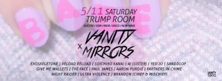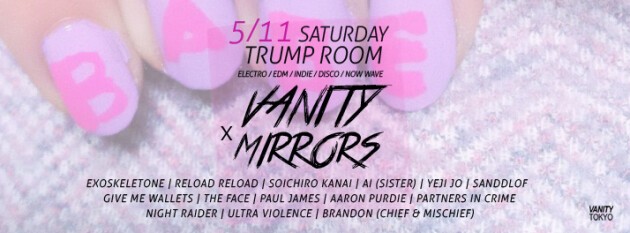 With its big name guests like STEVE AOKI, CRYSTAL CASTLES, KLAXONS, BLOC PARTY, HOT CHIP, CSS, YEAH YEAH YEAHS, and many more, VANITY pulls in a crowd of ELECTRO and eclectic loving party people that crowd the dancefloors at this monthly party. Teaming up with MIRRORS, the party the fashion kids, hipsters and models come to, they fill up the infamous venue "Trump Room" with a mix of people that is unlike any other event in Tokyo.