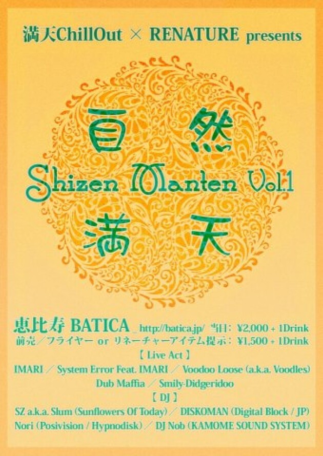 door.¥2,000(+1D) adv & w/f.¥1,500(+1D)フライヤー持参の方一人につき500yen割引