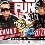 知らない人は無し、大阪いち有名なこの場所この曜日この時間。SOUL FOOD、SATURDAY AZUREに続く、毎週土曜日の新定番パーティー『THE FUN』が、2011年10月より始動!DJ MINAMI & DJ 下拓の、揺るぎないツートップは勿論、アーリータイムから、HipHopを中心にR&BやReggae、また近年のチャートを賑わすダンスチューンなど幅広い選曲が楽しめます!関西クラブ遊びの登竜門とも言える『土曜日のアズール』には、本当に色んな人が遊びに来ており、毎週来ても新たな音楽・お酒・友達と出会える、チェック必至のパーティーです!出会いの秘訣は、何より“楽しむ”こと!週末土曜日の夜を素敵なものにしたいパーリーピーポー達よ!JUST HAVE FUN!!