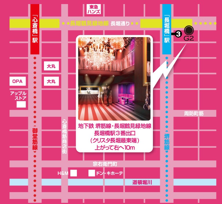 ACCESS: 長堀橋のすぐそば、 3番出口を出て東へ約10m!