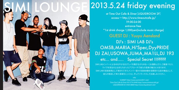 SIMI LABメンバーによるゆるやかなDJプレイをBGMとしたコミュニケーションと飲食による交流会の5回目。今回はいつものSIMI DJ'sに加え、ゲストDJとしてYuuyu Aenslandの参加が決定!