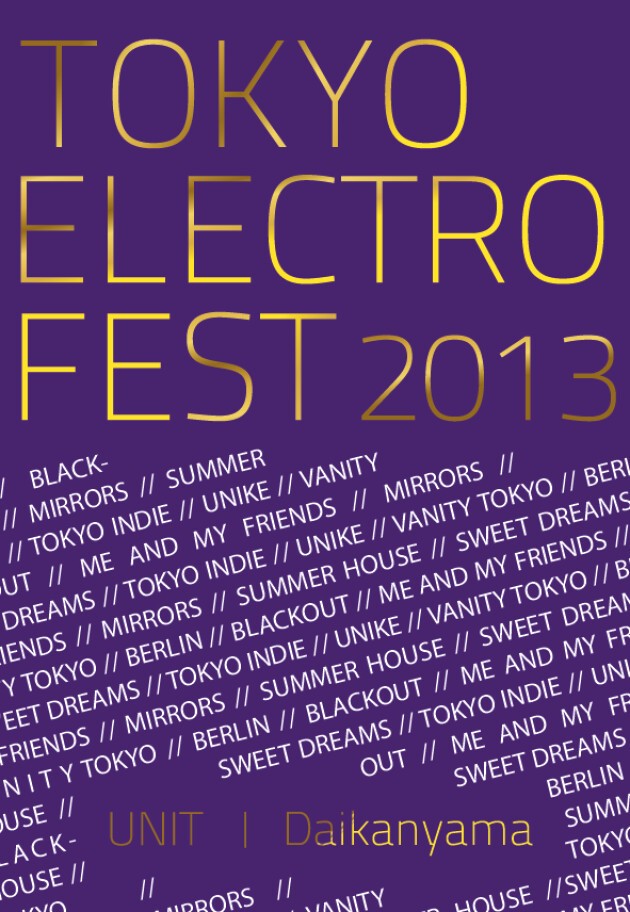 "Tokyo Electro Fest 2013 is bringing together some of the hottest underground events on the Tokyo scene for one festival of sound. The best DJs representing their event will battle it out, showcasing their unique styles on Friday, June 21st @ UNIT, Daikanyama."