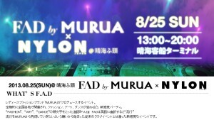 Article avaiable in Japaneseレディースファッションブランド「MURUA」がプロデュースするイベント。定期的に全国各地で開催され、ファッション、アート、ダンスが絡み合う、新感覚パーティ。“FASHION”、 “ART”、 “DANCE”の頭文字をとった造語『F.A.D』 FADは英語に直訳すると“流行”流行をMURUAから発信していきたいという願いから始まった従来のクラブイベントとは違った新感覚なイベントです。 Continue reading …