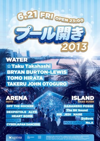 ビーチ、パーク、プールなどの屋外エリアを擁し、野外フェスやビーチパーティーを凌ぐ人気を誇るageHaのサマーシーズンがついに到来!他では絶対味わえない開放感たっぷりの屋外エリアが期間限定でオープンし、でっかい都会のオアシスが登場する。BIKINI NIGHTや真夏のさびしんぼナイトなどバラエティに富んだスペシャルパーティーが続々待ち構えている中、どこよりも早く!夏を感じれるパーティー「プール開き」を開催!