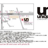 貼り紙がある階段をあがるとunique LABORATORYです!