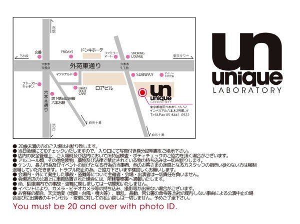 •必ず年齢確認の出来る身分証明書をお持ち下さい(18歳未満入場不可)。身分証明書をご提示頂けない場合ご入場出来ませんので予めご了承ください。